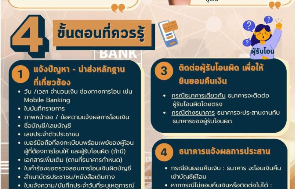 - ติดต่อผู้รับโอนผิด เพื่อให้ยินยอมคืนเงิน